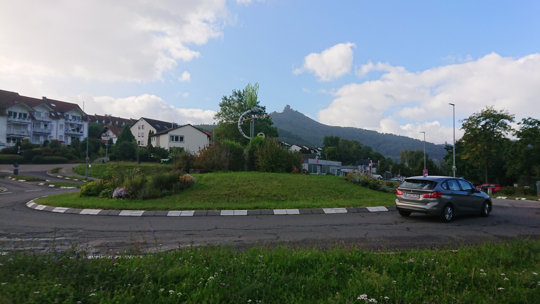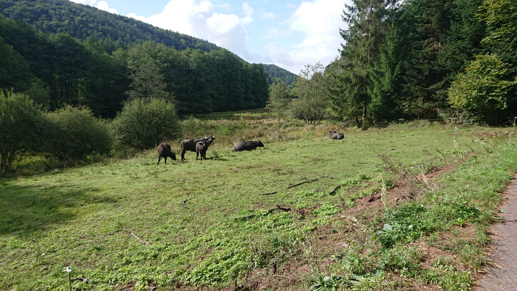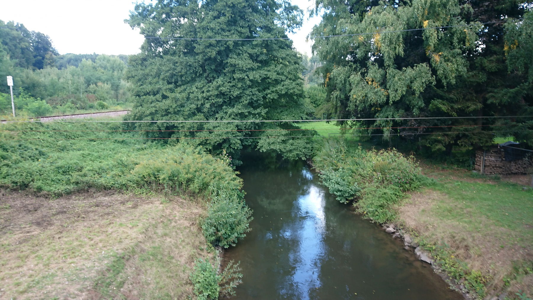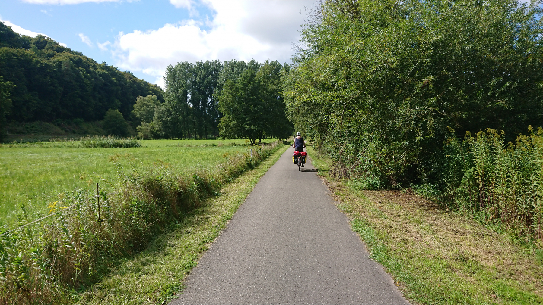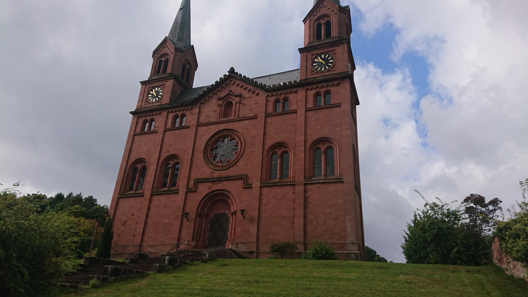 Nach etwas mehr als einer Stunde Fahrt trübt sich das Wetter ein wenig ein. Dicke Wolken ziehen auf, aber noch bleibt es trocken. Obwohl wir größtenteils im Tal Queich, am Hirtenbach oder der Rodalb oder anderer kleinere Flüsse und Bäche entlang fahren, ist es doch ein stetiges auf und ab. Aber die Lanschaft ist schö, die Wege gut bis sehr gut. Hin und wieder mal durch ein Ortschaft und kaum Verkehr. Zwischendurf fallen auch ein paar Tropfen (Der Wetterbericht hatte für heute Regen angesagt) aber das ist nicht so viel, dass wir die Regensachen benötigen würden.