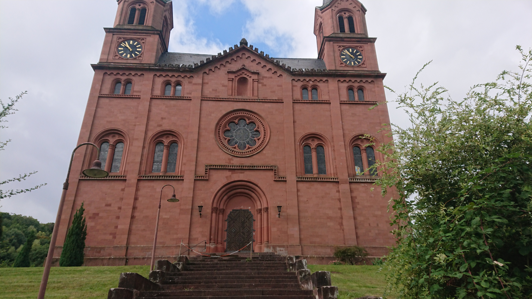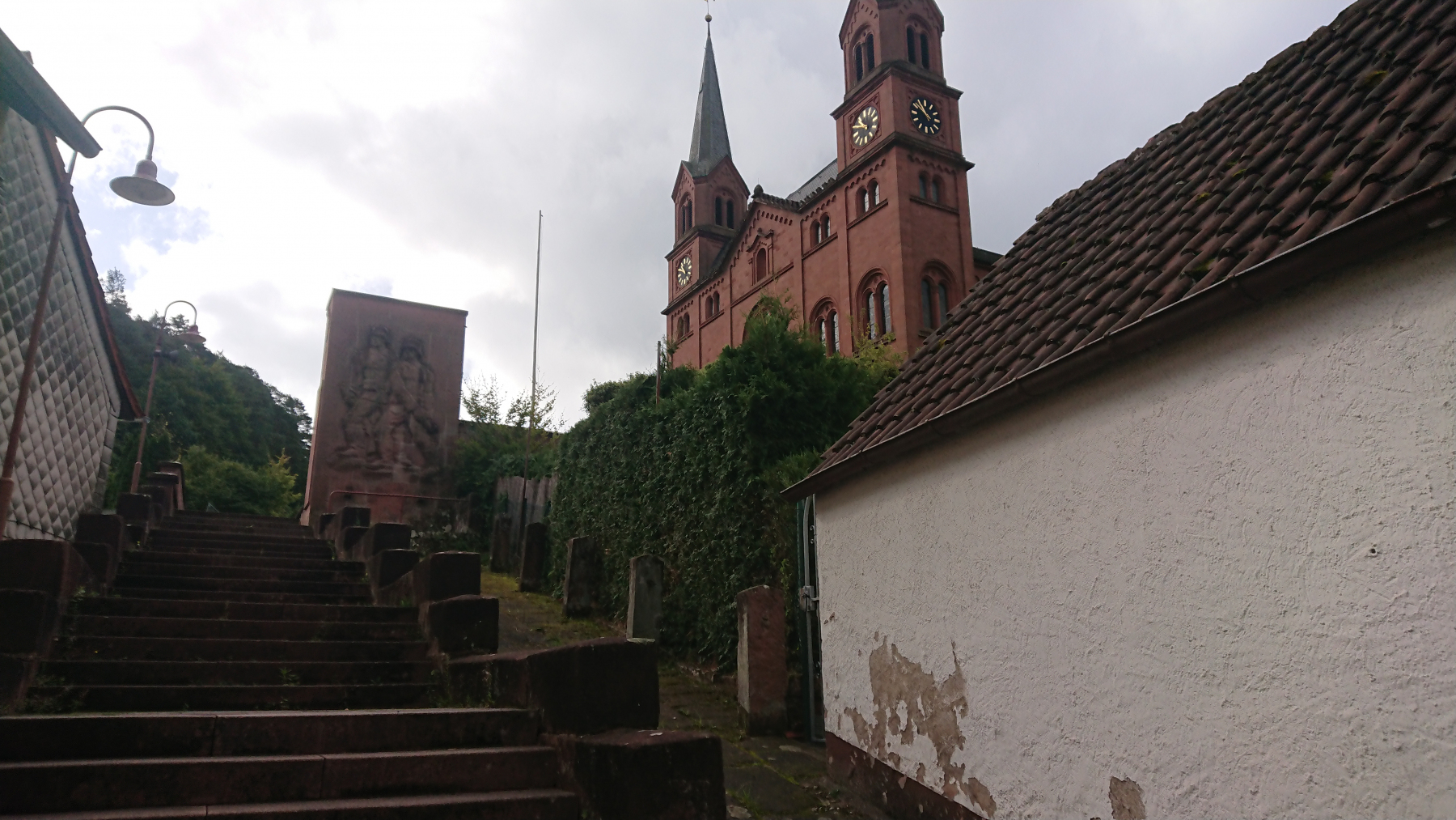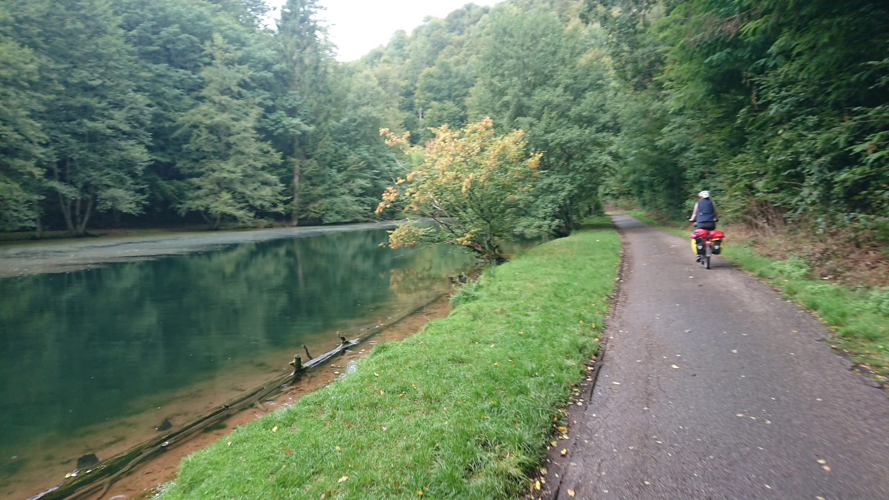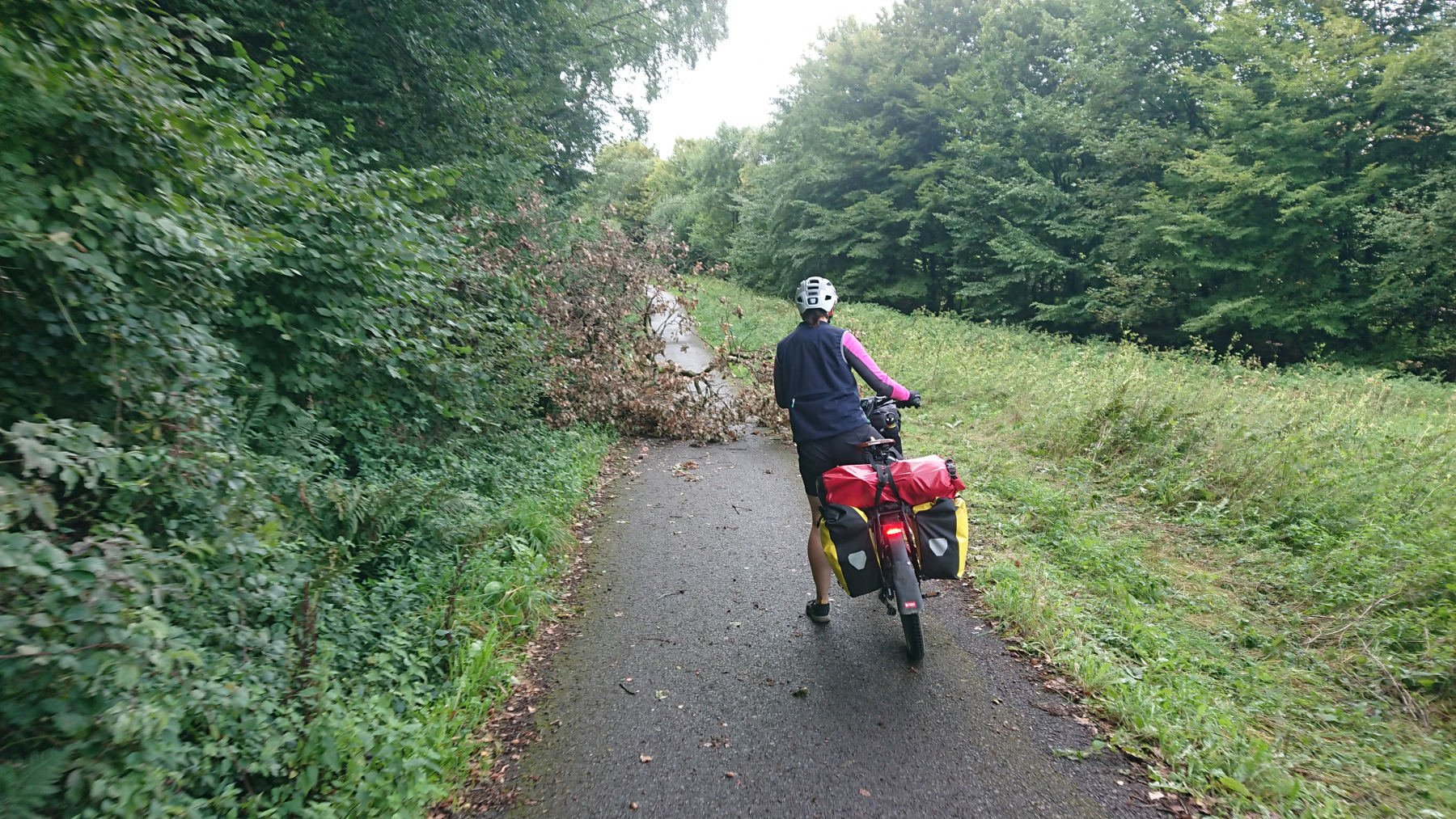 Nach etwas mehr als einer Stunde Fahrt trübt sich das Wetter ein wenig ein. Dicke Wolken ziehen auf, aber noch bleibt es trocken. Obwohl wir größtenteils im Tal Queich, am Hirtenbach oder der Rodalb oder anderer kleinere Flüsse und Bäche entlang fahren, ist es doch ein stetiges auf und ab. Aber die Lanschaft ist schö, die Wege gut bis sehr gut. Hin und wieder mal durch ein Ortschaft und kaum Verkehr. Zwischendurf fallen auch ein paar Tropfen (Der Wetterbericht hatte für heute Regen angesagt) aber das ist nicht so viel, dass wir die Regensachen benötigen würden.