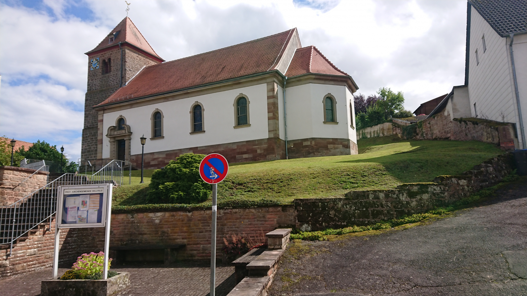 Noch bevor wir Wildgartwiesen erreichen, sehen wir schon von Ferne eine große Kirche. Stolz und majestätisch steht sie da die ev. Kirche von Wildgartwiesen.