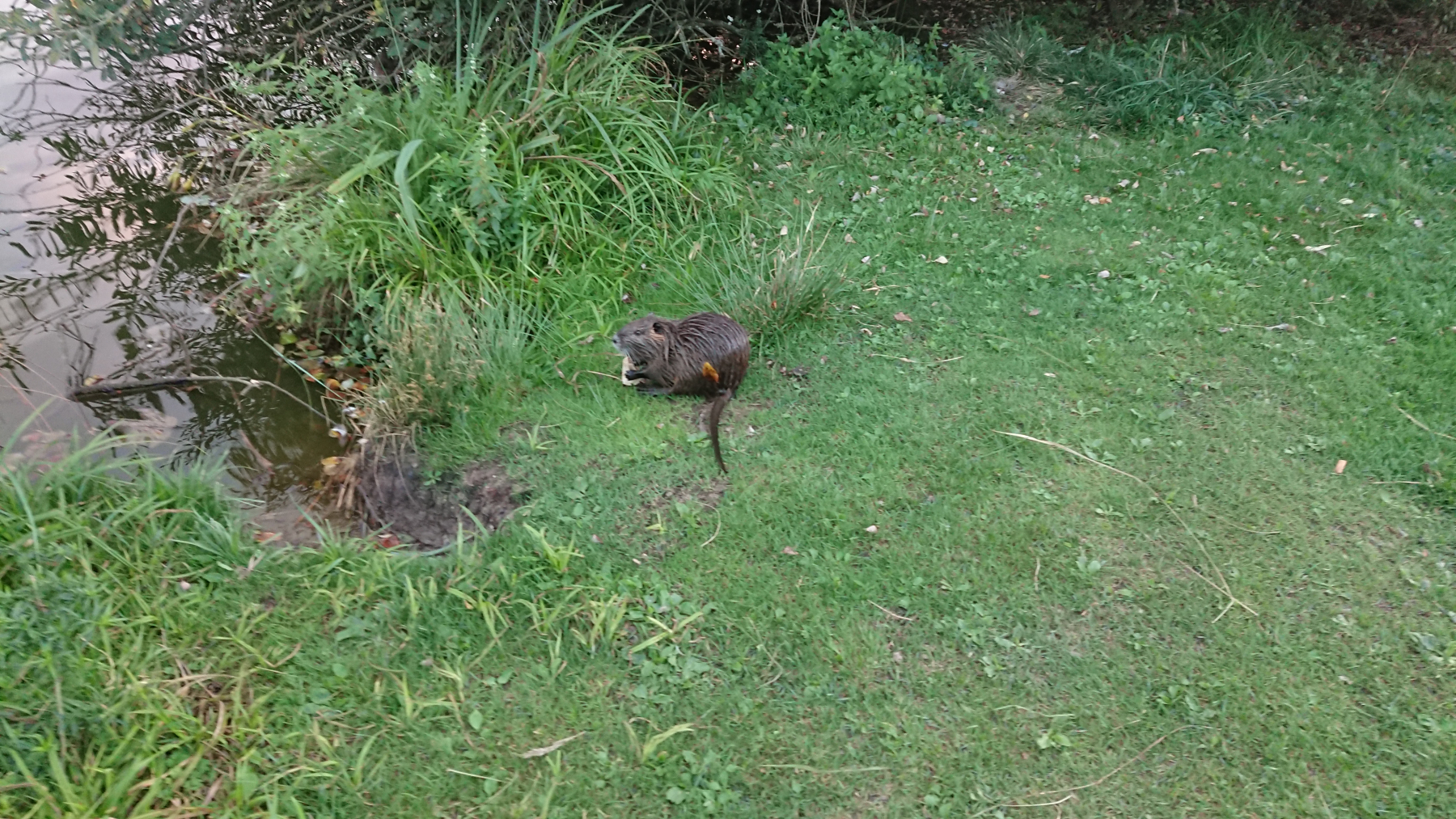 Abends dann machen wir noch einen „Verdauungsspaziergang“ durch den nahen Park. Im Stadtpark ein Nutria und das Tier kommt auch aus dem Wasser und läßt sich von den Parkbesuchern füttern. Für uns in Hamburg sind die Tiere eher eine Plage.
