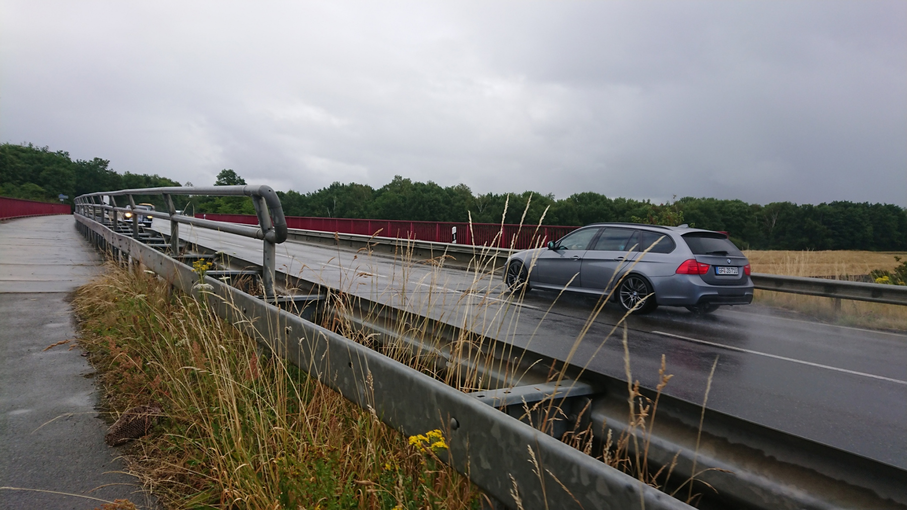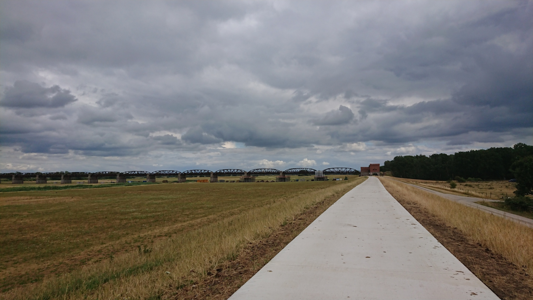 Bei Dömitz queren wir auf der dortigen Brücke die Elbe. Auch in der Region Dömitz/Lenzen/Wendland sind wir schon einige Touren gefahren. Auch die alte Eisenbahnbrücke bei Dömitz haben wir schon einige Male besucht. Aber ich finde, es ist immer wieder toll, diese alte Brücke (auch wenn sie 1945 geprengt wurde) anzusehen.