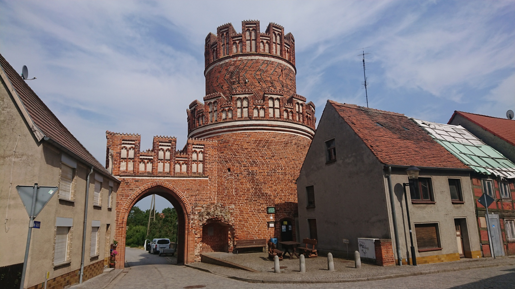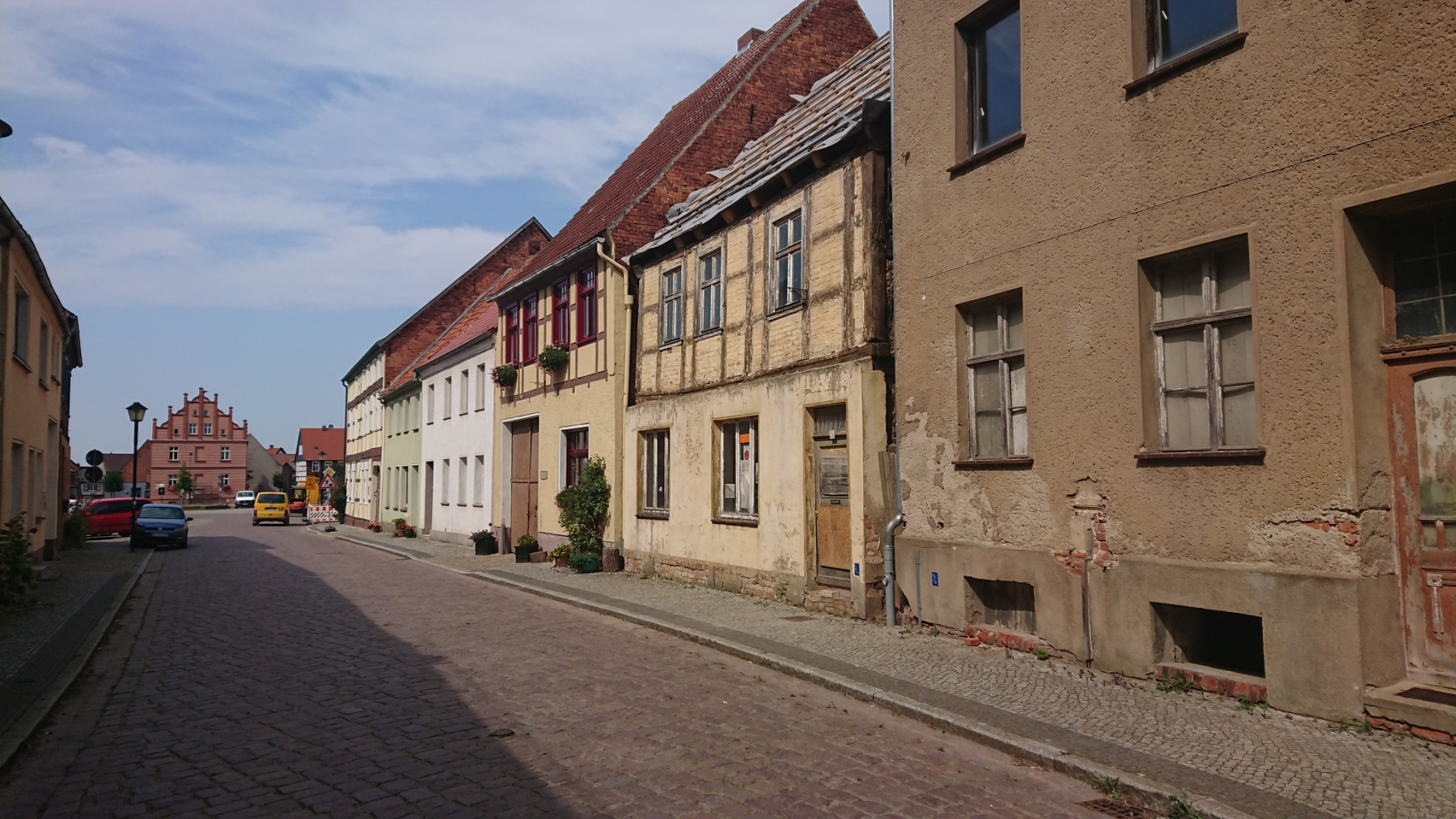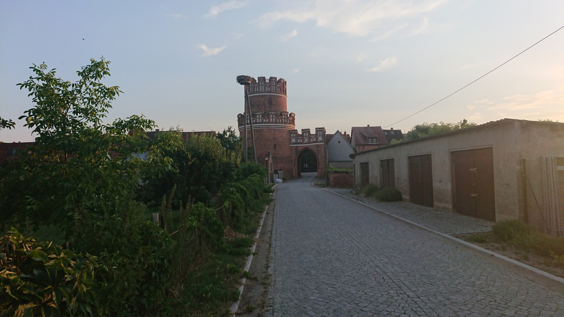 Ganz so gut wie gestern kann sich der Radweg “Historische Städte 4″heute zwar nicht präsentieren, aber dennoch ist er in einem ausgezeichneten Zustand. Über Zülchendorf und Dobbrikow und andere kleine Dörfer kommen wir nach Rieben. Im Ort ist schon viel Kopfsteinpflaster, der Radweg geht dann am Ortsausgang in einen unbefestigten Sandweg über. Wie drehen um und nutzen stattdessen die Landstraße.