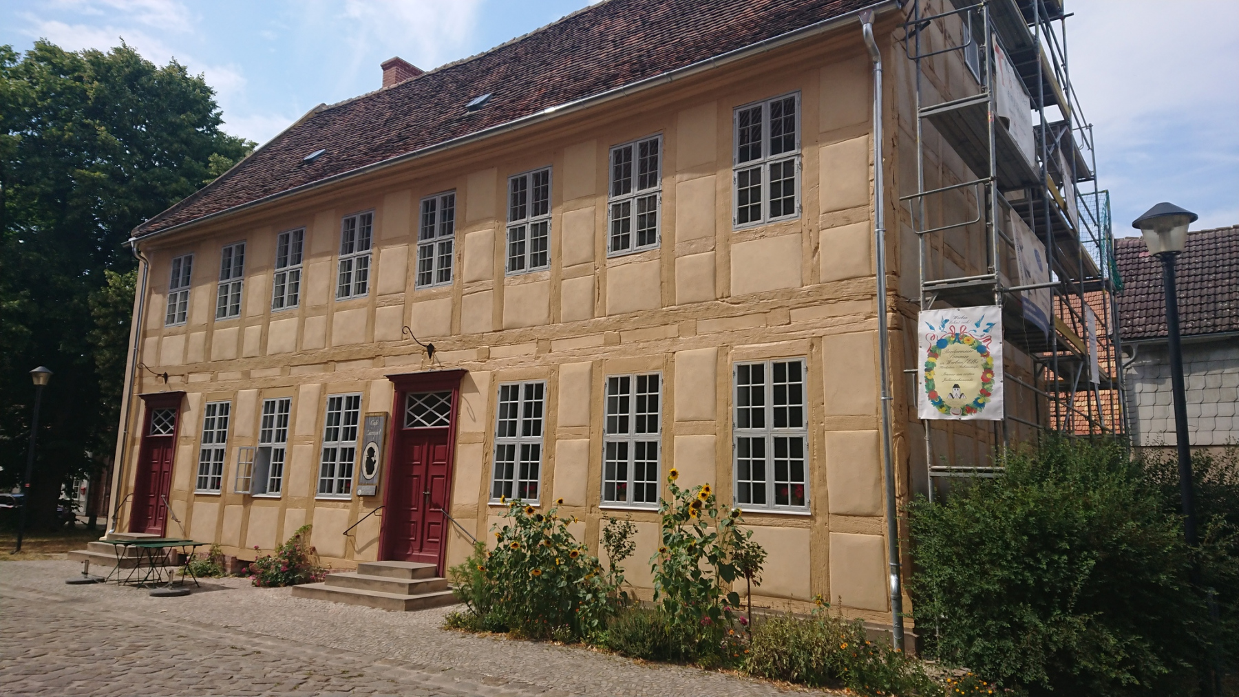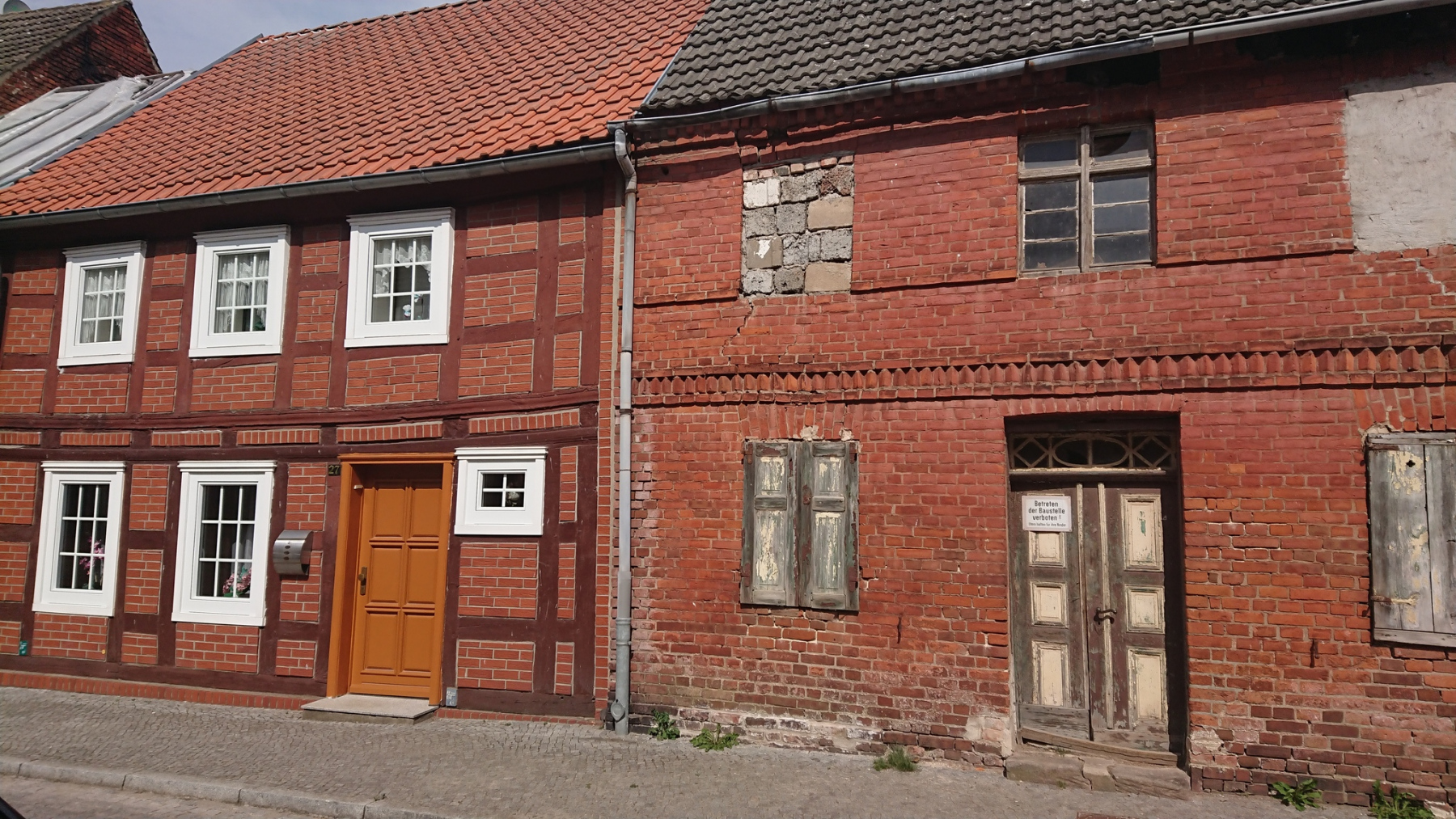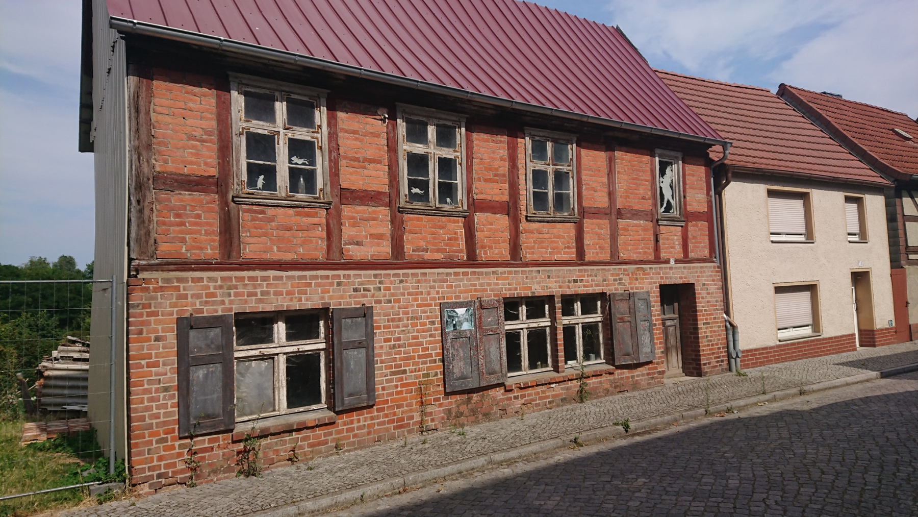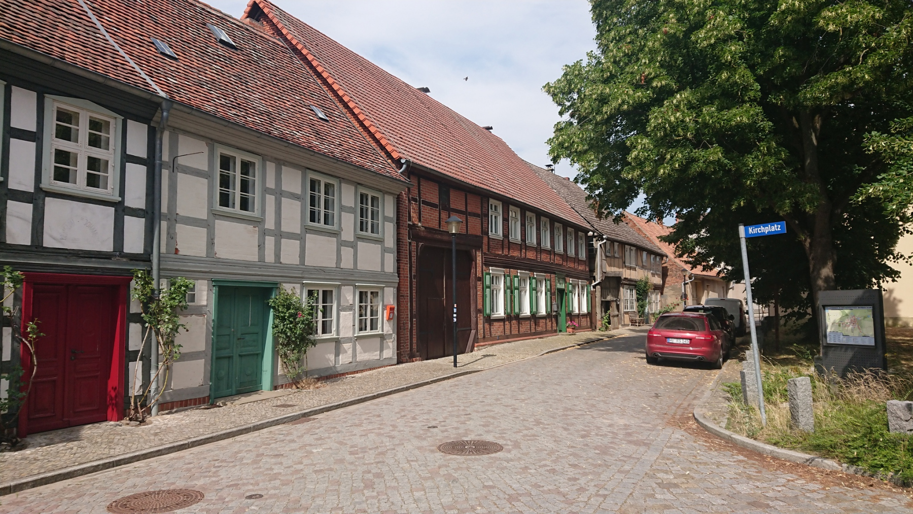 Ganz so gut wie gestern kann sich der Radweg “Historische Städte 4″heute zwar nicht präsentieren, aber dennoch ist er in einem ausgezeichneten Zustand. Über Zülchendorf und Dobbrikow und andere kleine Dörfer kommen wir nach Rieben. Im Ort ist schon viel Kopfsteinpflaster, der Radweg geht dann am Ortsausgang in einen unbefestigten Sandweg über. Wie drehen um und nutzen stattdessen die Landstraße.