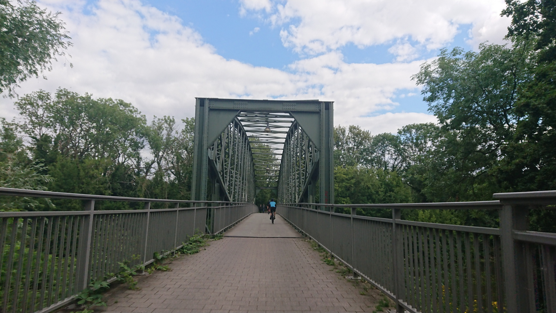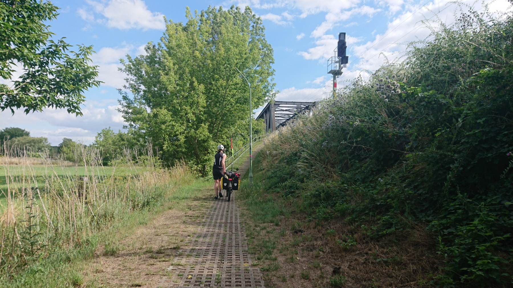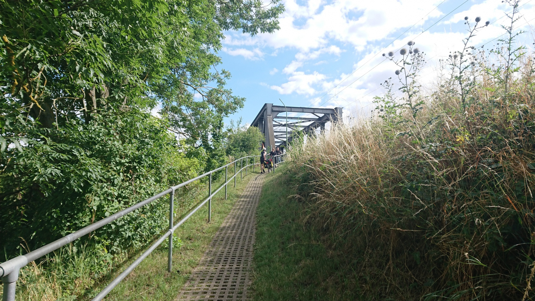 und der Weg auf der Brücke ist wiederum sehr schmal, aber in einen besseren Zustand als auf der Brücke in Barby.