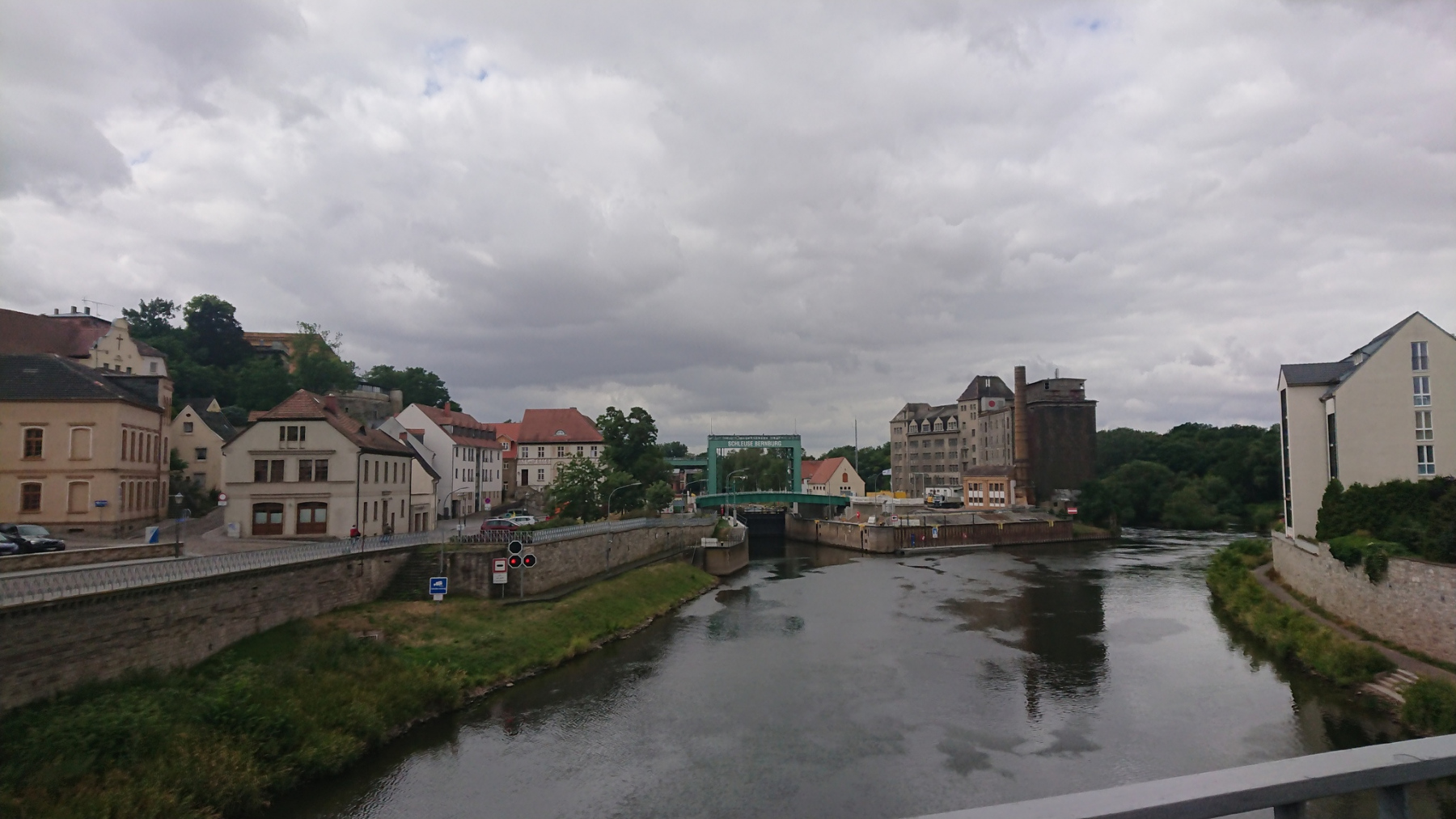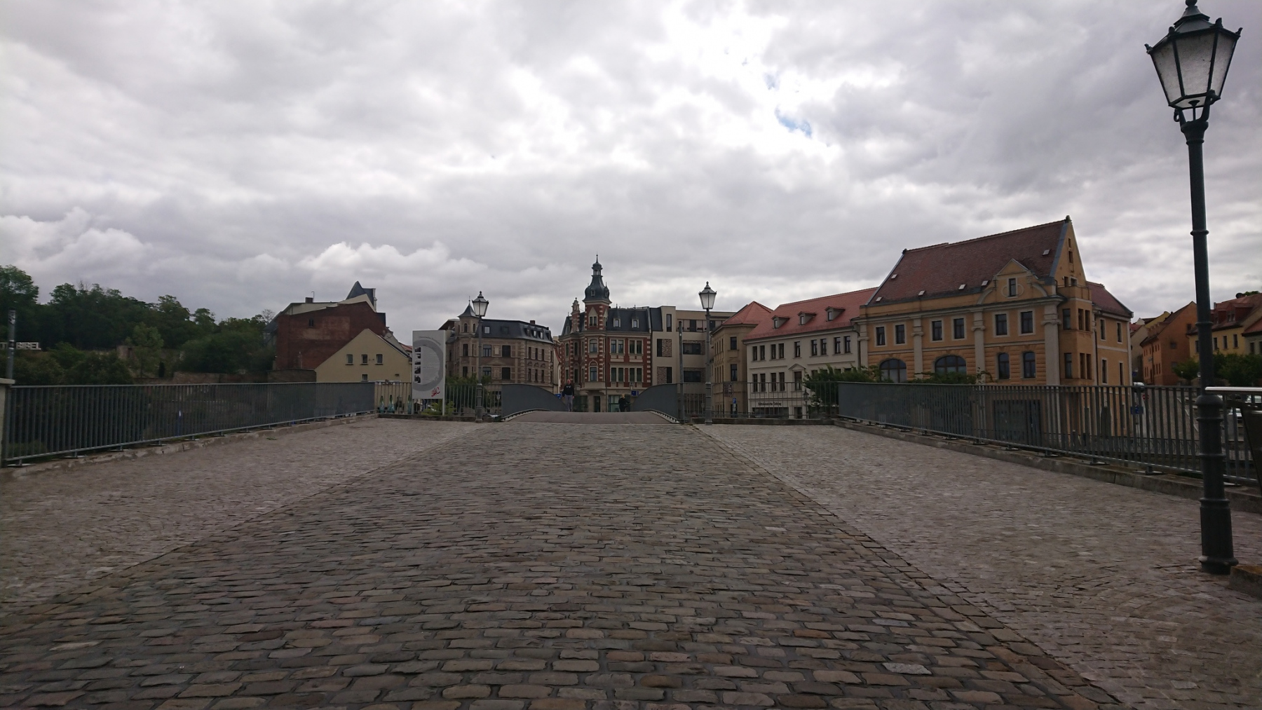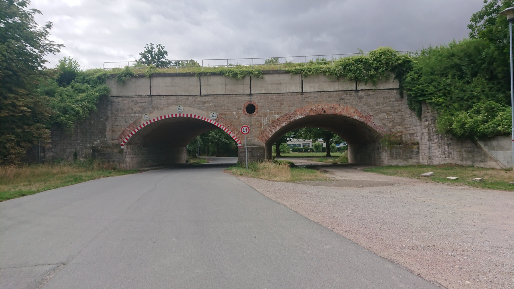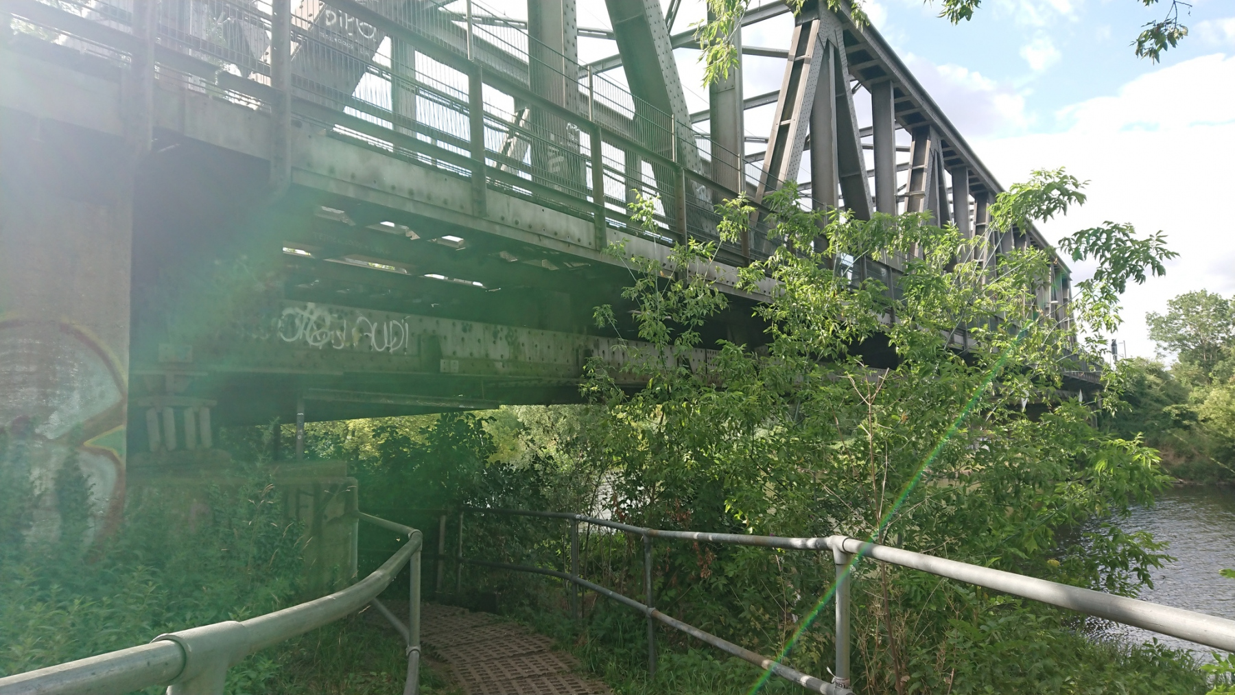und der Weg auf der Brücke ist wiederum sehr schmal, aber in einen besseren Zustand als auf der Brücke in Barby.