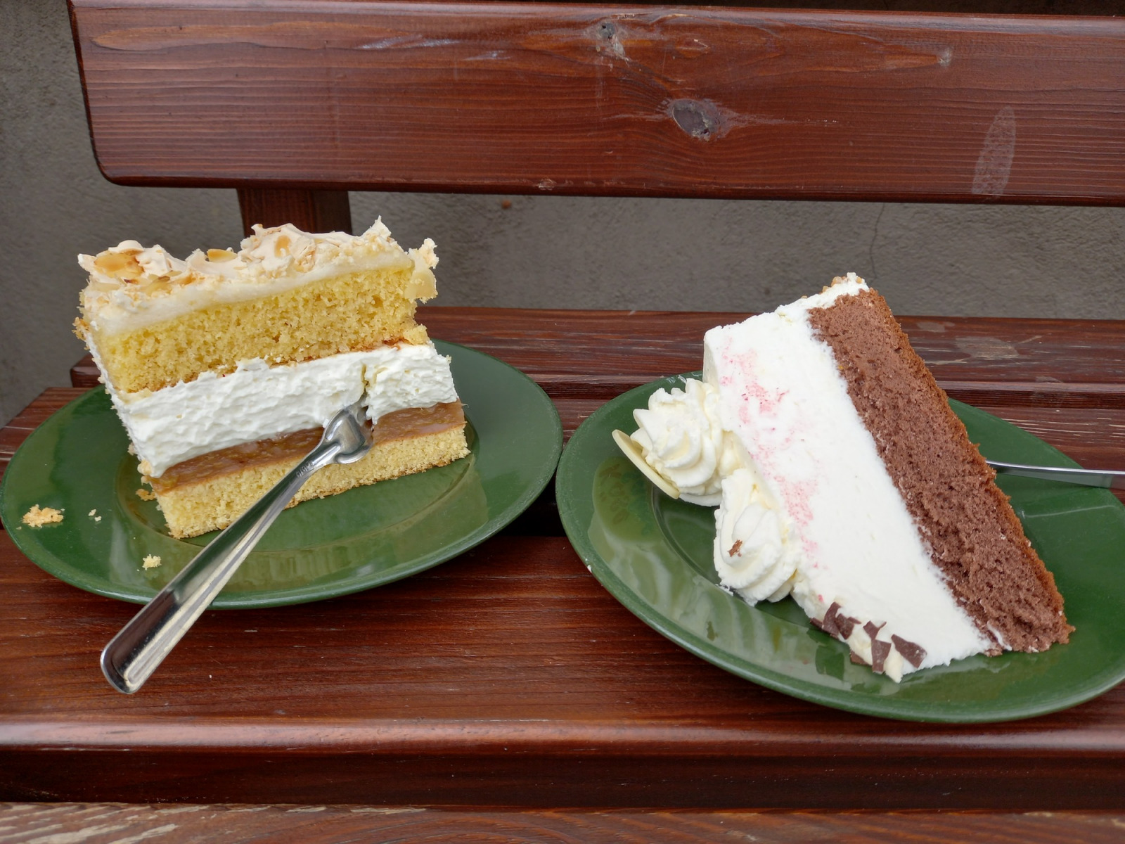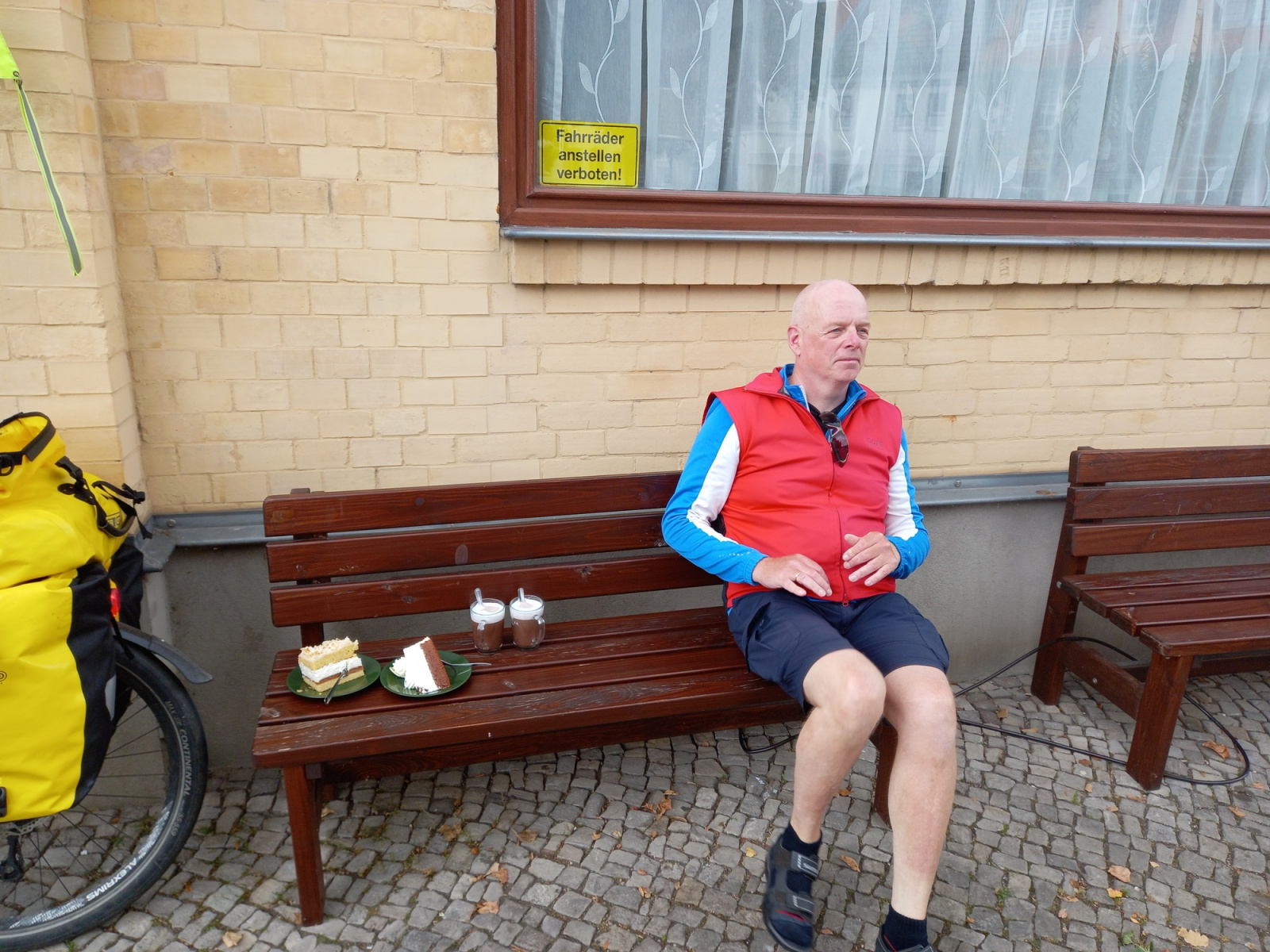 Nach gut 2 Stunden haben wir Bernburg erreicht. Hier hatten wir 2018 in der Stadt übernachtet. Heute am Sonntag Vormittag ist alles noch ein wenig verschlafen. Wir suchen die wohl einzige Bäckerei auf, die über die Mittagszeit geöffnet hat. Hier gibt es aber nur Eis und Torte. Dann eben Torte.
