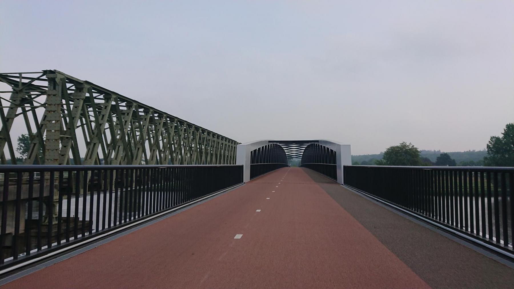 Glatt, breit und in einem super Zustand. Bei Mook queren wir auf einer extra Fahrradbrücke die Maas, die wir dann auch nicht weiter begleiten.