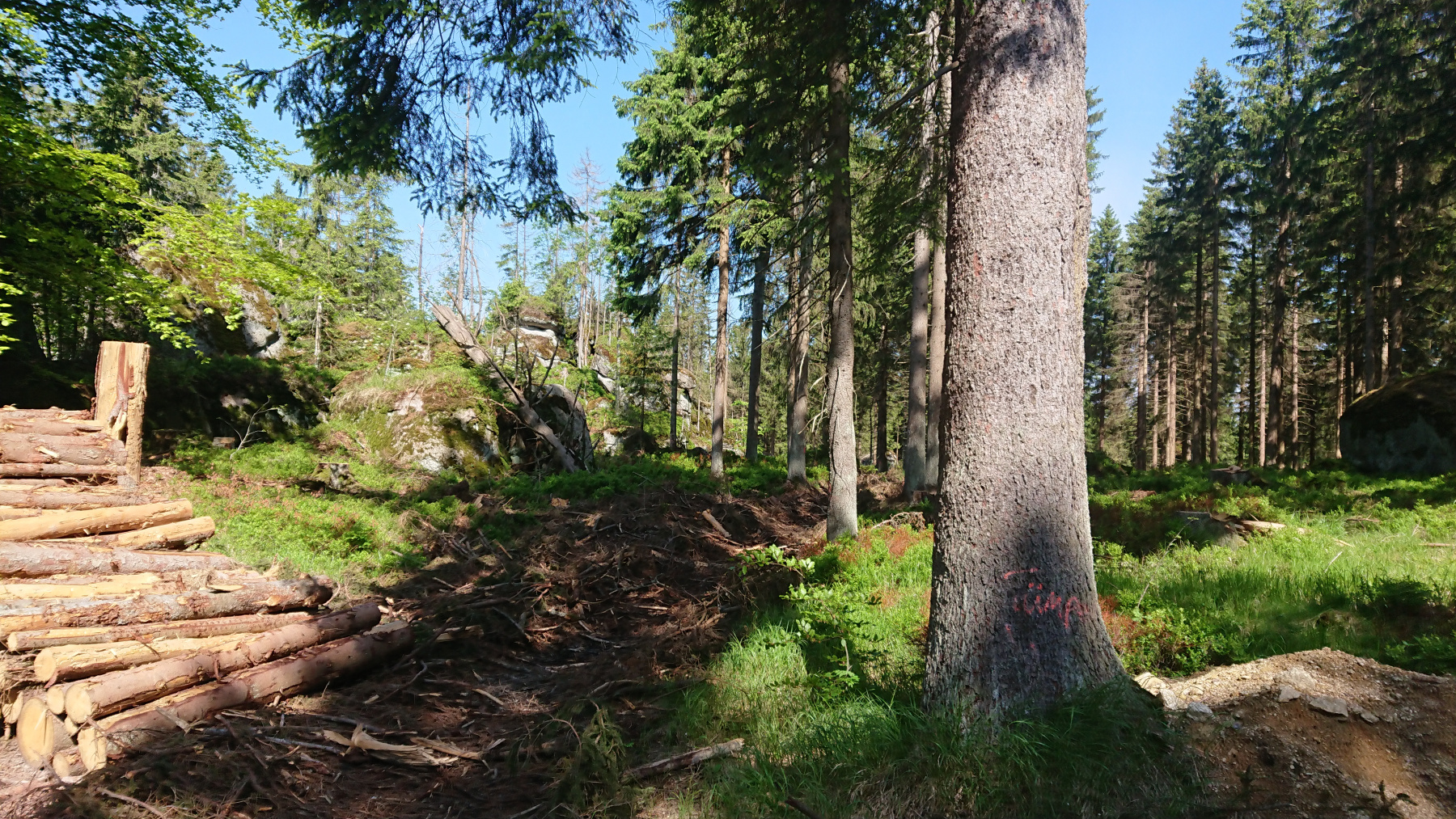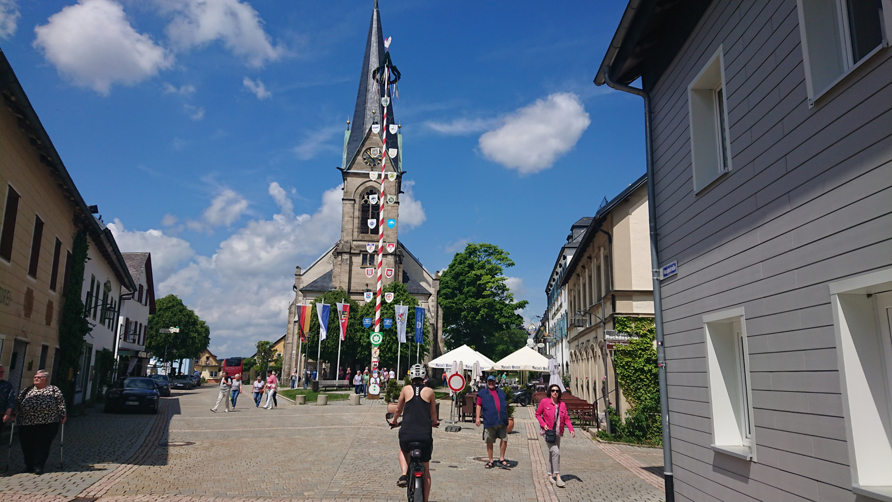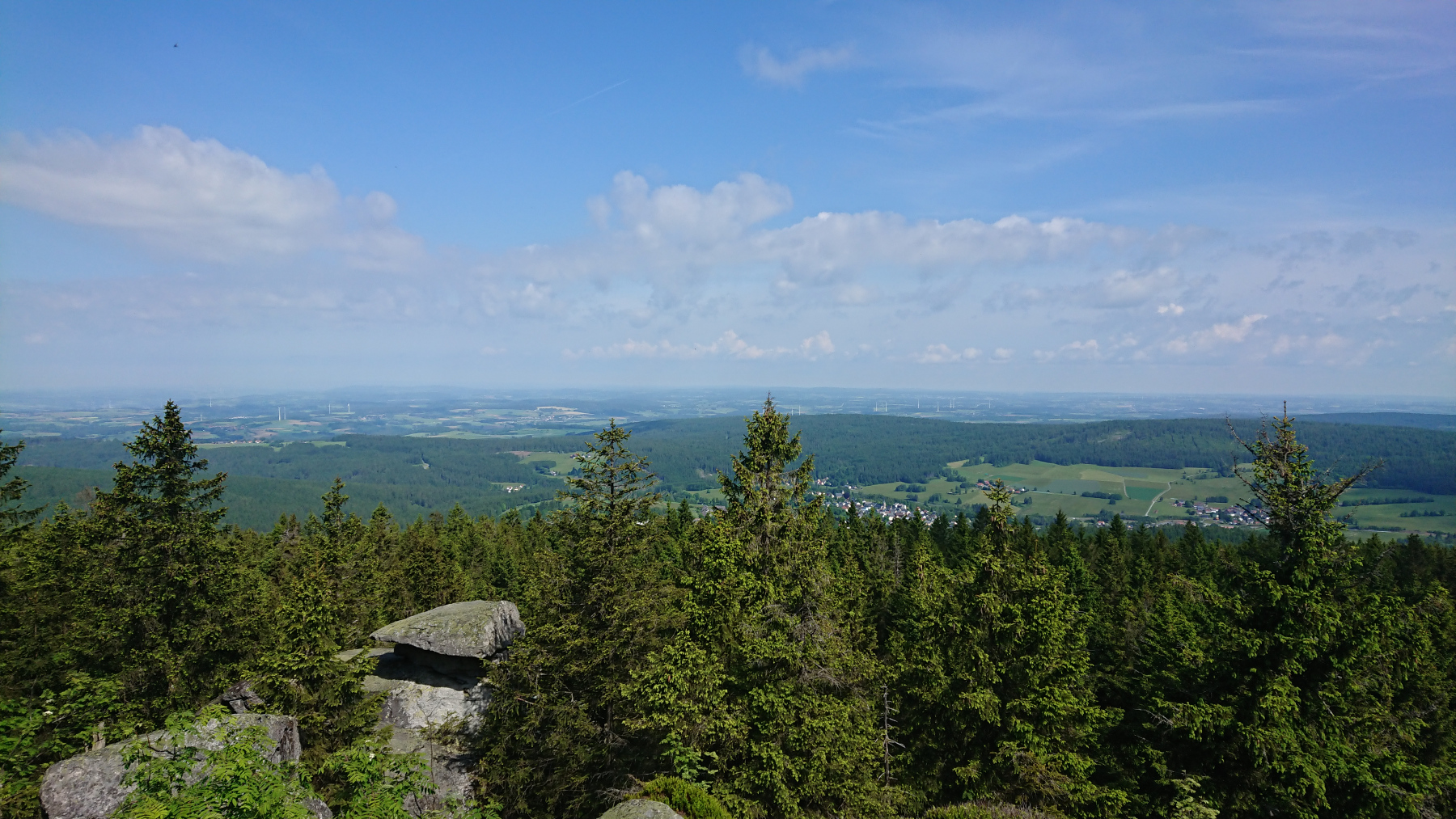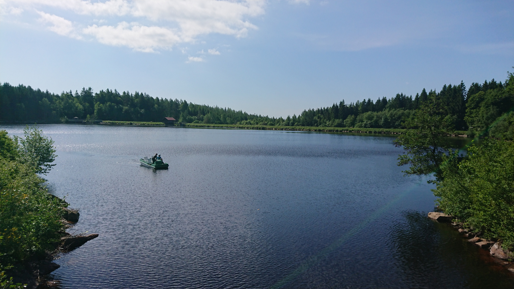 Heute ist für uns Pausetag. Den südlichsten Punkt und damit den entferntesten Punkt haben wir erreicht und wir haben die kleine Wohnung für zwei Nächte gebucht. so können wir heute mit einer kleinen 30km-Tour die Umgebung erkunden und uns dabei und danach gut ausruhen und das schöne Wetter genießen. Ziele heute : Fichtelsee, Ochsenkopf, Mainquelle und Bischofsgrün.