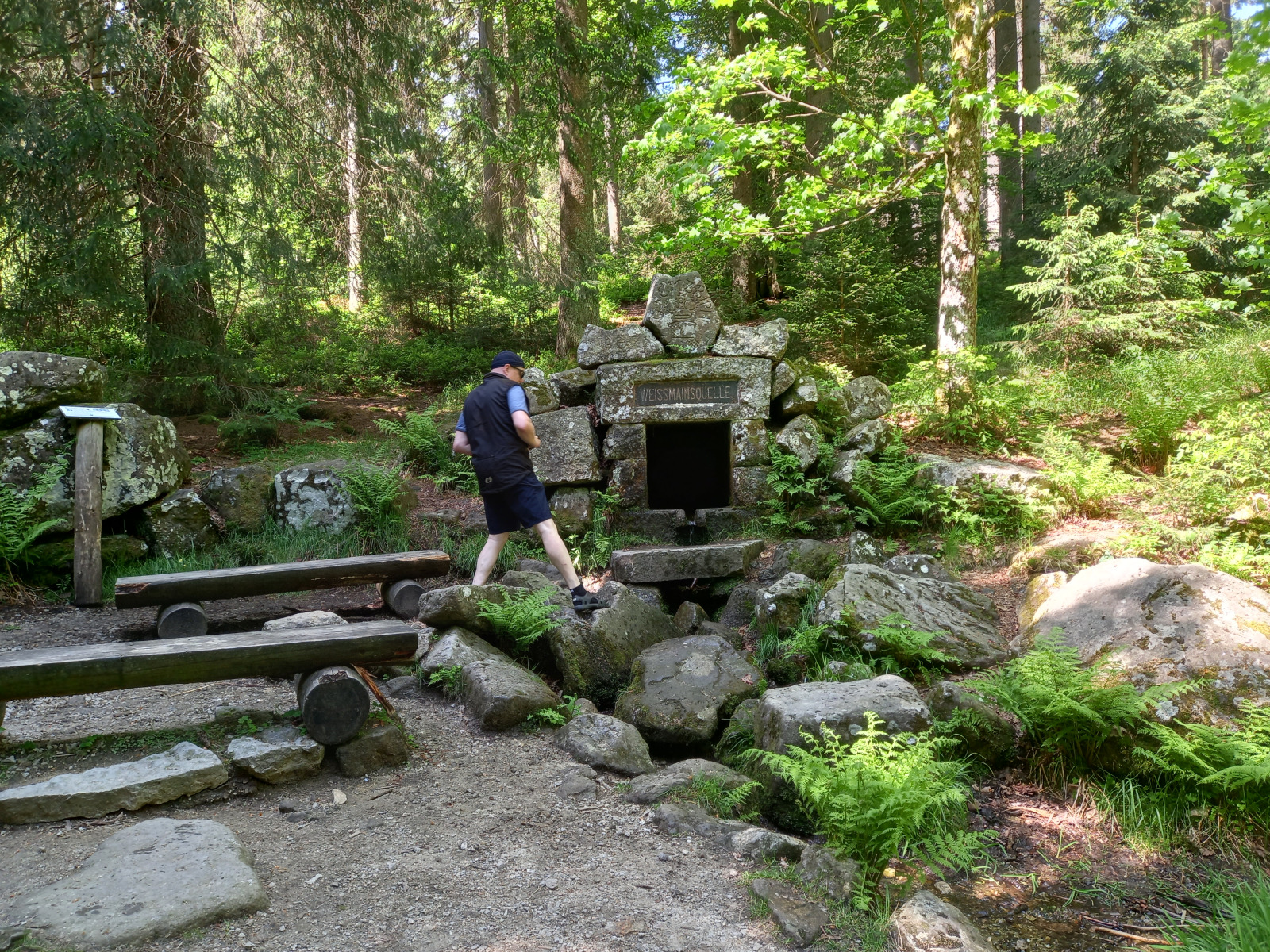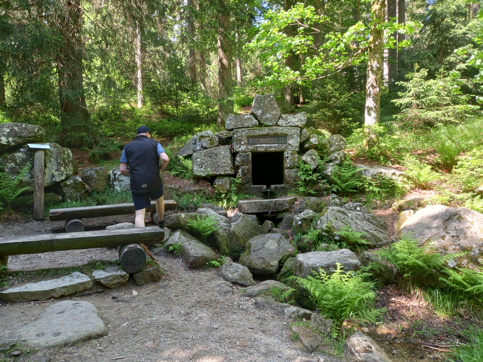 Wir fahren weiter zur Mainquelle. Der Main entsteht erst durch den Zusammenfluss der beiden Quellflüsse Weisser Main und Roter Main. Hier am Ochsenkopf entspringt wer Weisse Main.