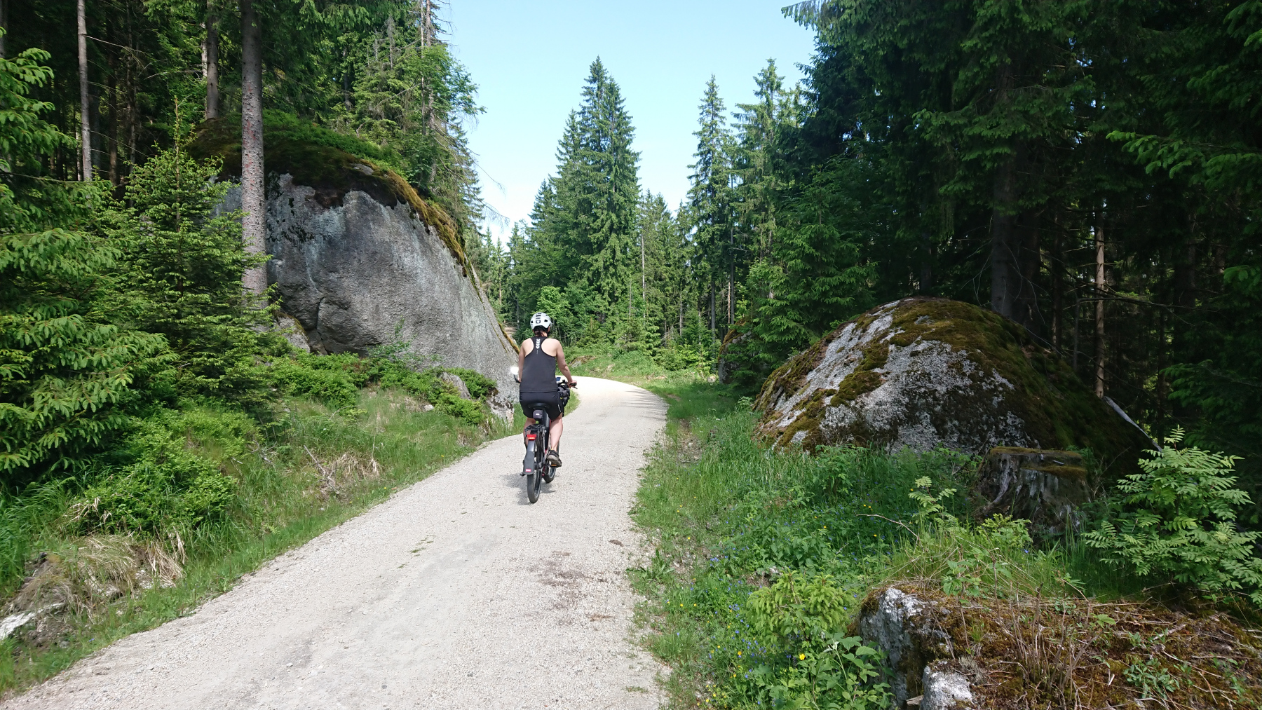 Das Wasser ist eiskalt und volkommen klar und nach einer kurzen Pause fahren wir weiter hinunter und umrunden auf dem Höhenweg den Ochsenkopf bis nach Bischoftgrün.