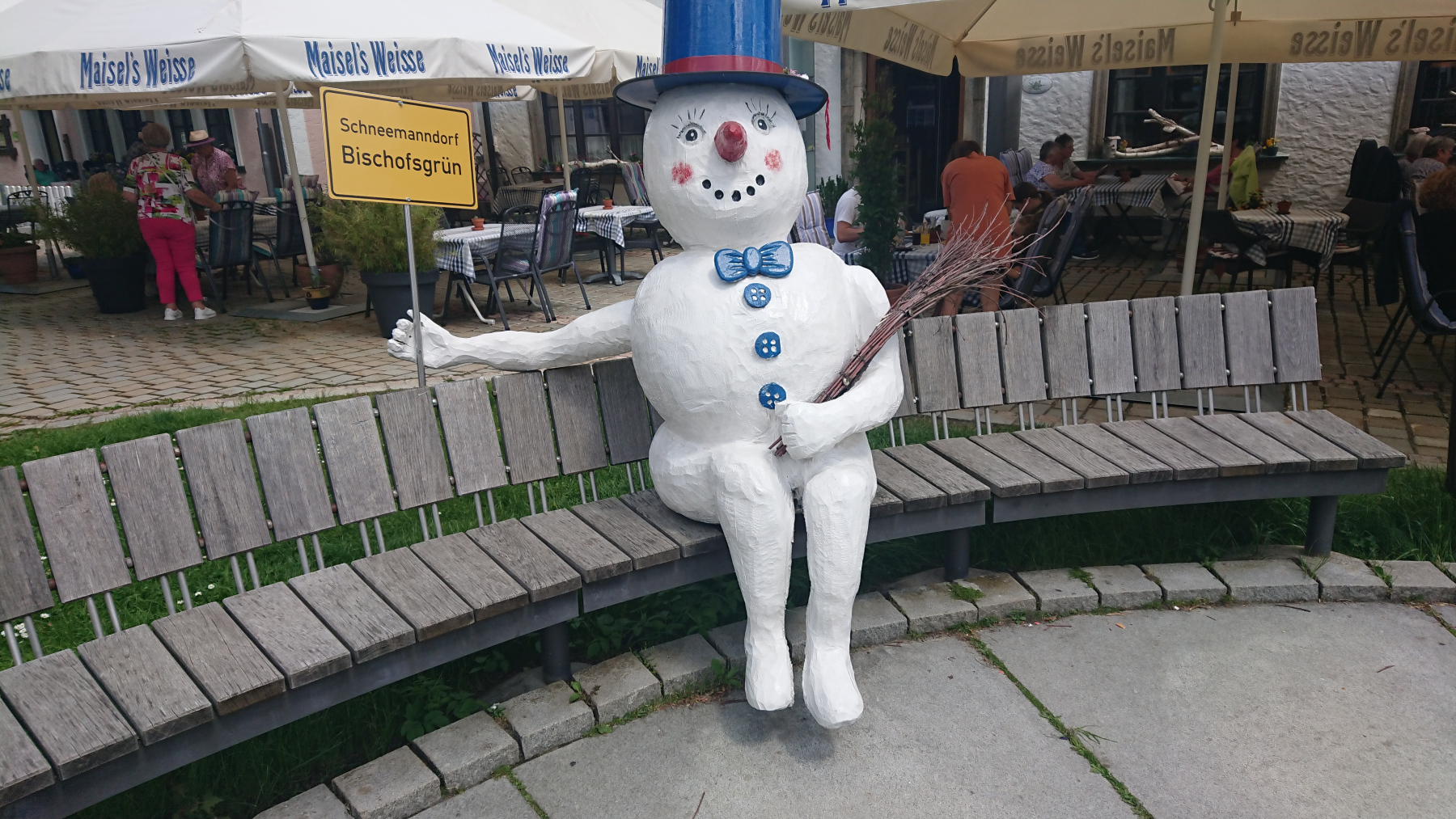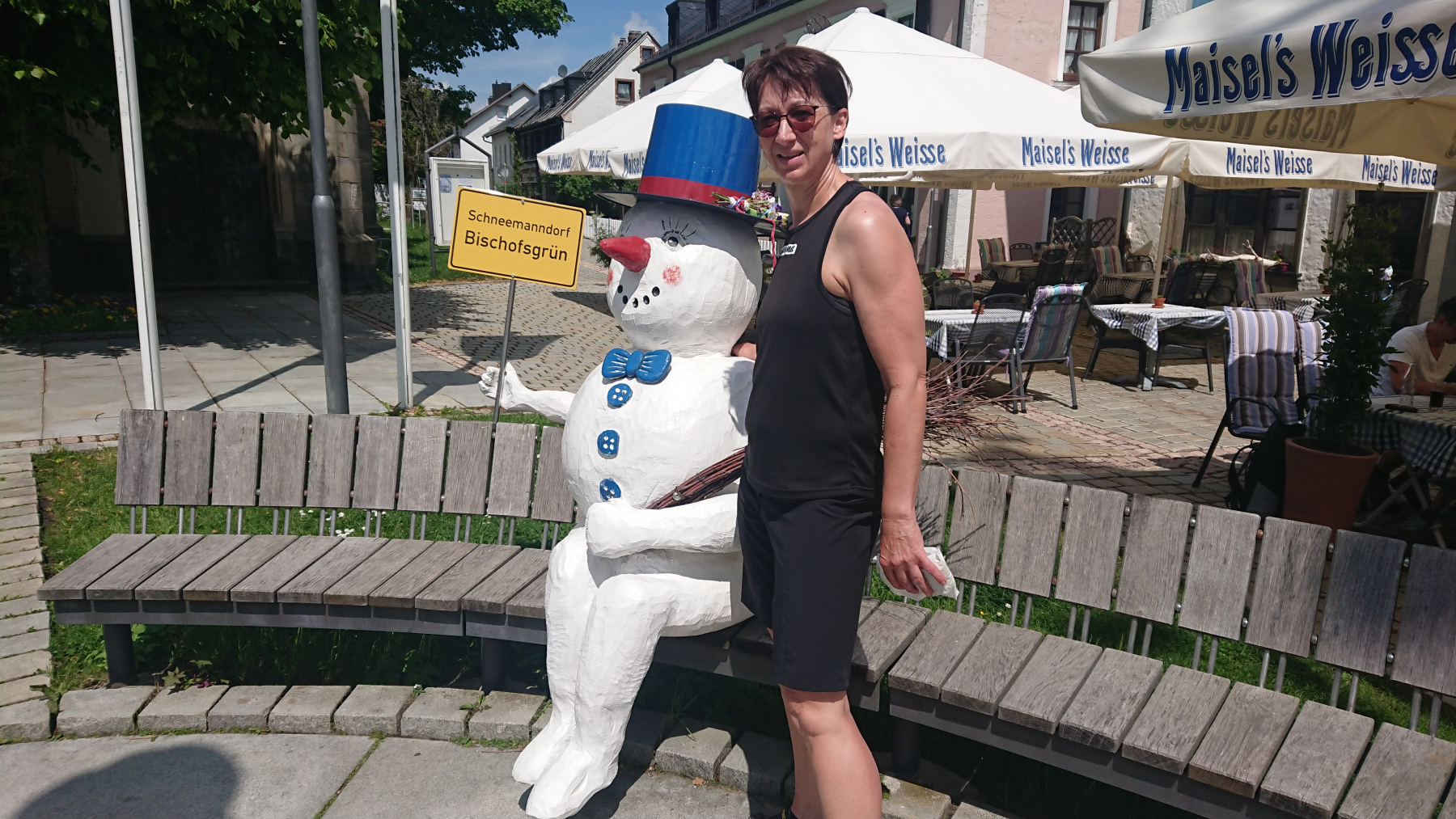 Ein wenig einkaufen müssen wir noch, Pause machen und das mitgebrachte Brot verzehren, dem Schneemann Guten Tag sagen und noch ein kleines Eis essen, danach geht es dann auch schon zurück nach Fleckl.